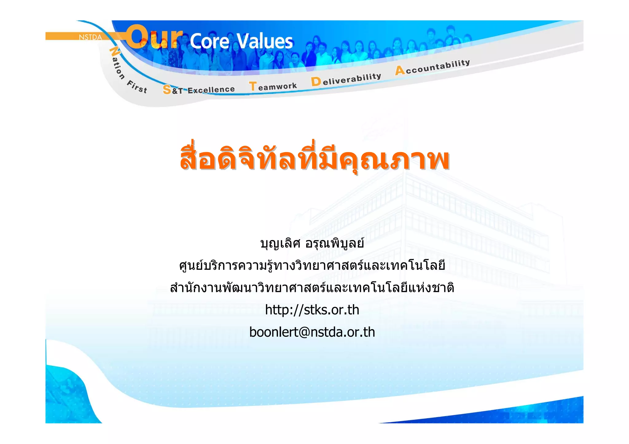 Digital Standard 1. สื่อดิจิทัลที่มีคณภาพ