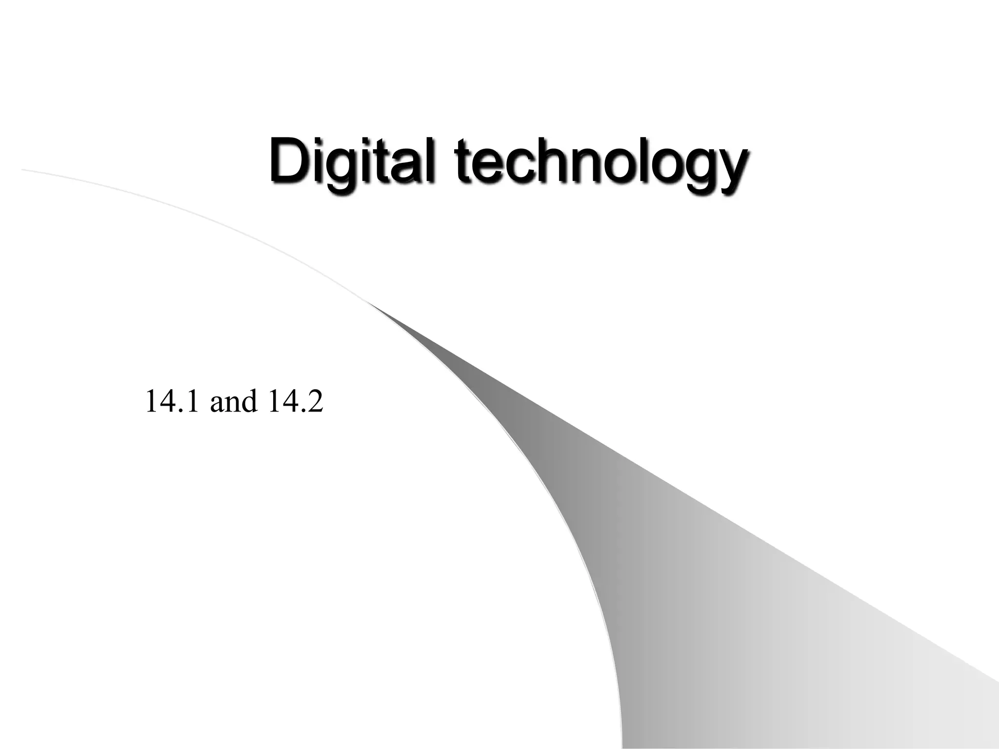 Digital technology uses binary digits or "bits" represented as 1s and 0s rather than decimal digits. A bit can have one of two values: 0 or 1. Computers group bits into bytes of 8 bits each, allowing for 256 possible values. Digital signals are represented as a series of 1s and 0s that can be stored, transmitted, and reconstructed into the original analog signal. Digital storage provides higher quality, reproducibility, and ability to manipulate data compared to analog storage. Devices like CDs and DVDs use pits and lands impressed on plastic to store digital data read by lasers, allowing high-capacity, low-cost storage of music, video, and other digital media.