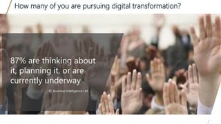 Digital transformation promises benefits like reduced costs and improved efficiency, but many organizations struggle to realize these benefits due to issues with technology adoption, inconsistent processes, and a lack of trust in new systems. To truly achieve results, digital transformation requires changes to both technology and behaviors within an organization's performance culture. Leaders must clearly communicate the strategy, define roles and responsibilities, and provide change management support to address issues like alarm fatigue or fears about new technologies. When implemented successfully through partnerships between technology and behaviors, digital transformation can deliver impressive cost savings through improvements like reduced project cycle times, increased uptime, and coordinated asset management.