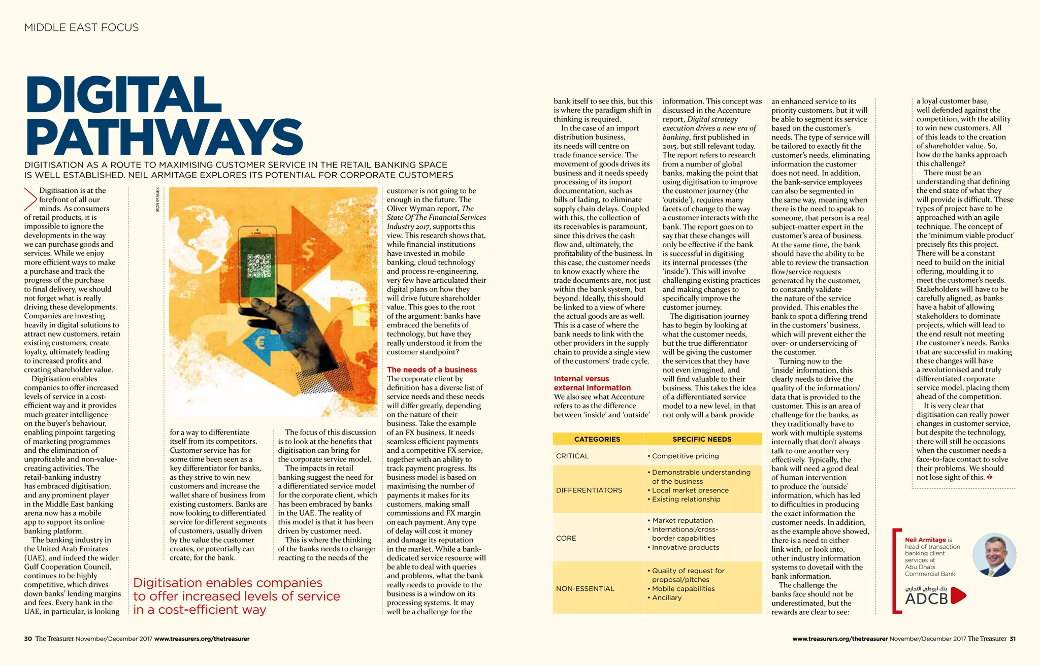 The document discusses how digitization can enhance customer service for corporate banking customers. It explores how digitization allows banks to provide more tailored and segmented services based on different customers' unique needs. For example, an FX business needs efficient payments and FX services, while an import company needs speedy trade finance processing. The document also examines how banks must digitize internal processes to improve the external customer experience. True differentiation will come from anticipating customer needs and linking bank systems with other industry platforms to provide a holistic view of customers' business operations. Banks face challenges integrating legacy systems but can gain loyal customers and market share through superior digitized service.