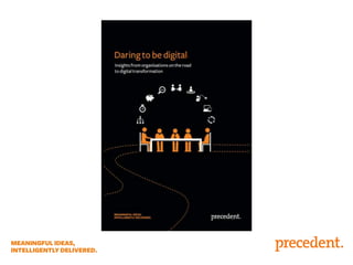 This document provides an overview of digital transformation strategies and themes. It introduces George Evans and Mark Sherwin as commercial directors and discusses working in sectors like education, health, and financial services. Key themes around digital transformation are explored, including harnessing crowdsourcing, new business models, mobile technologies, the internet of things, and using data insights. The document emphasizes that digital must become a business-wide priority and notes challenges of gaining support for transformation. It frames digital change as a "hero's journey" and provides tips on measuring impacts and telling stories to gather support for bigger changes.