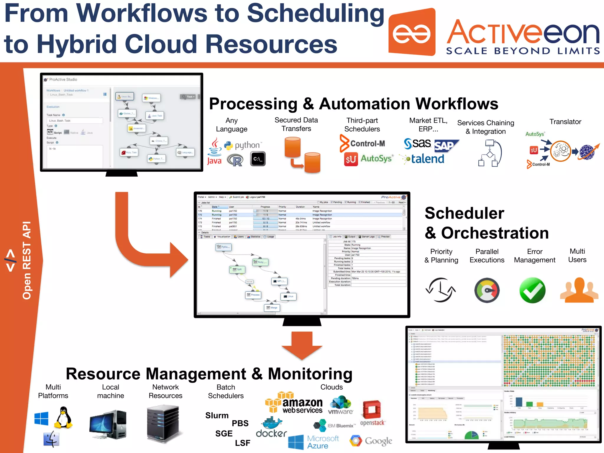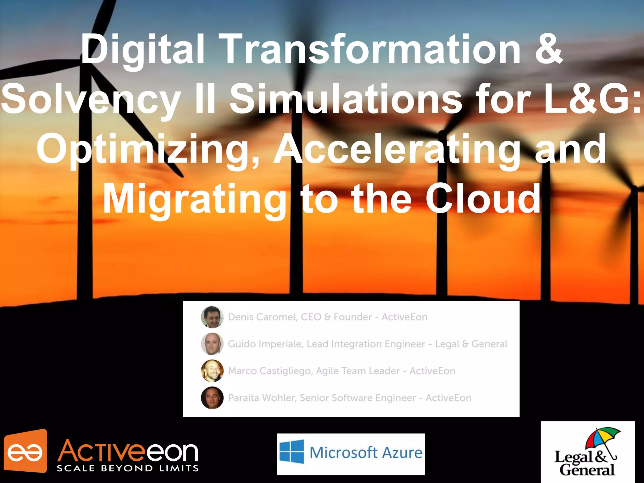 Legal & General, a 181-year old financial services group, selected ActiveEon ProActive to modernize their Solvency II risk calculation simulations and help migrate them from their private datacenter to Microsoft Azure cloud. ProActive would optimize and accelerate the simulations, running tasks in parallel across cloud resources. Using ProActive's workflows and scheduling, the end-to-end simulation time was reduced from 18 hours to 5 hours, and high priority reports became available 5 hours sooner. Monitoring ensured tasks continued running even if cloud resources failed.