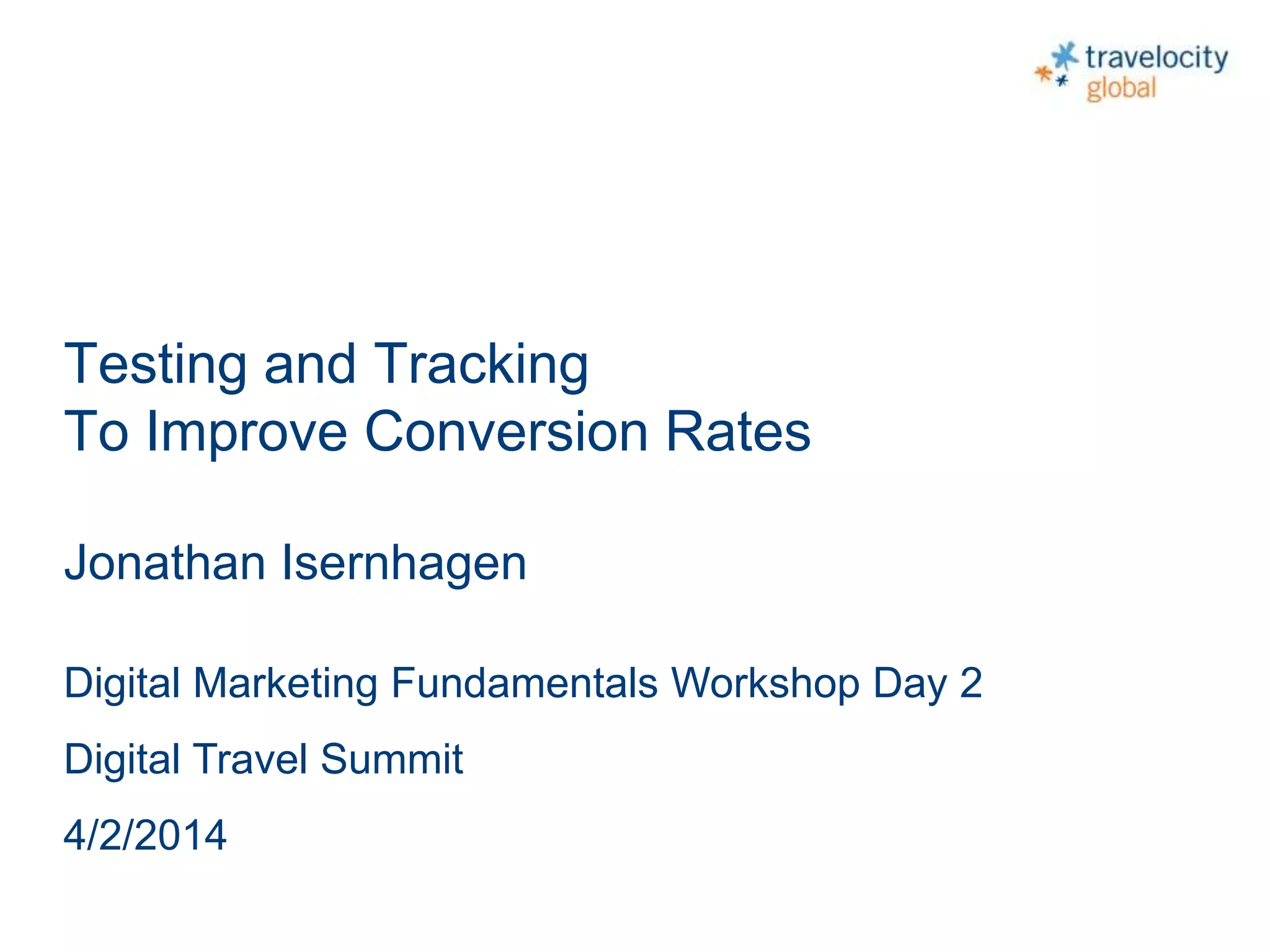 The document outlines a digital marketing workshop that focuses on A/B testing methodologies to improve conversion rates, featuring insights from expert Jonathan Isernhagen. Key topics covered include test prioritization, the importance of a testing database, and various testing philosophies, including those of Eisenberg and Anderson. It emphasizes continuous improvement through data-driven decision making and presents alternative testing methods such as the multi-armed bandit approach.