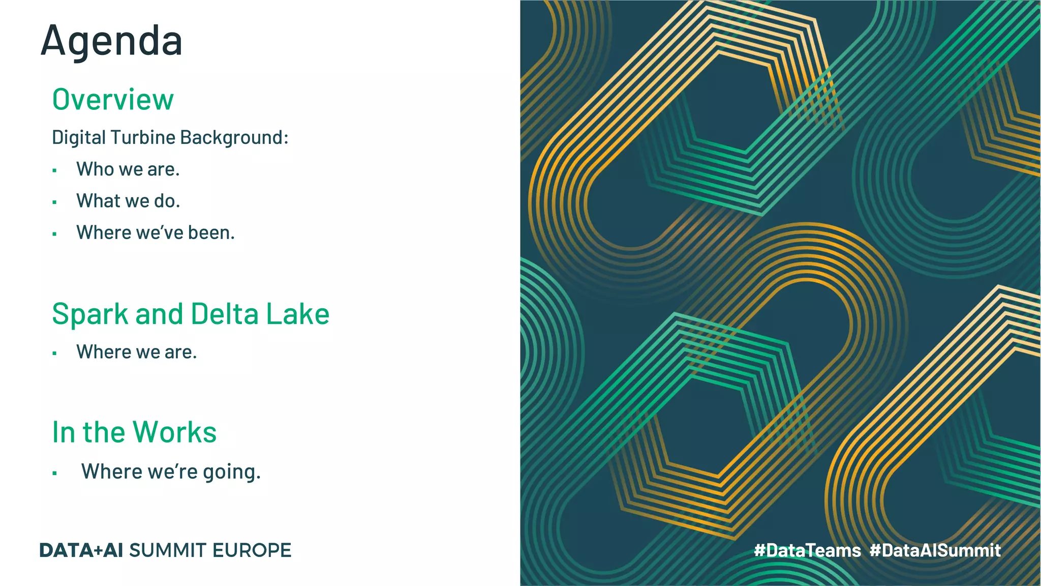 The document outlines an agenda presentation by Dan Ferrante, focusing on Digital Turbine's use of Delta Lake and Spark for improving mobile user experiences. It highlights the company's objectives of real-time data processing, optimizing Redshift, and enhancing data analytics with machine learning. The session invites feedback and encourages participants to explore career opportunities at Digital Turbine.