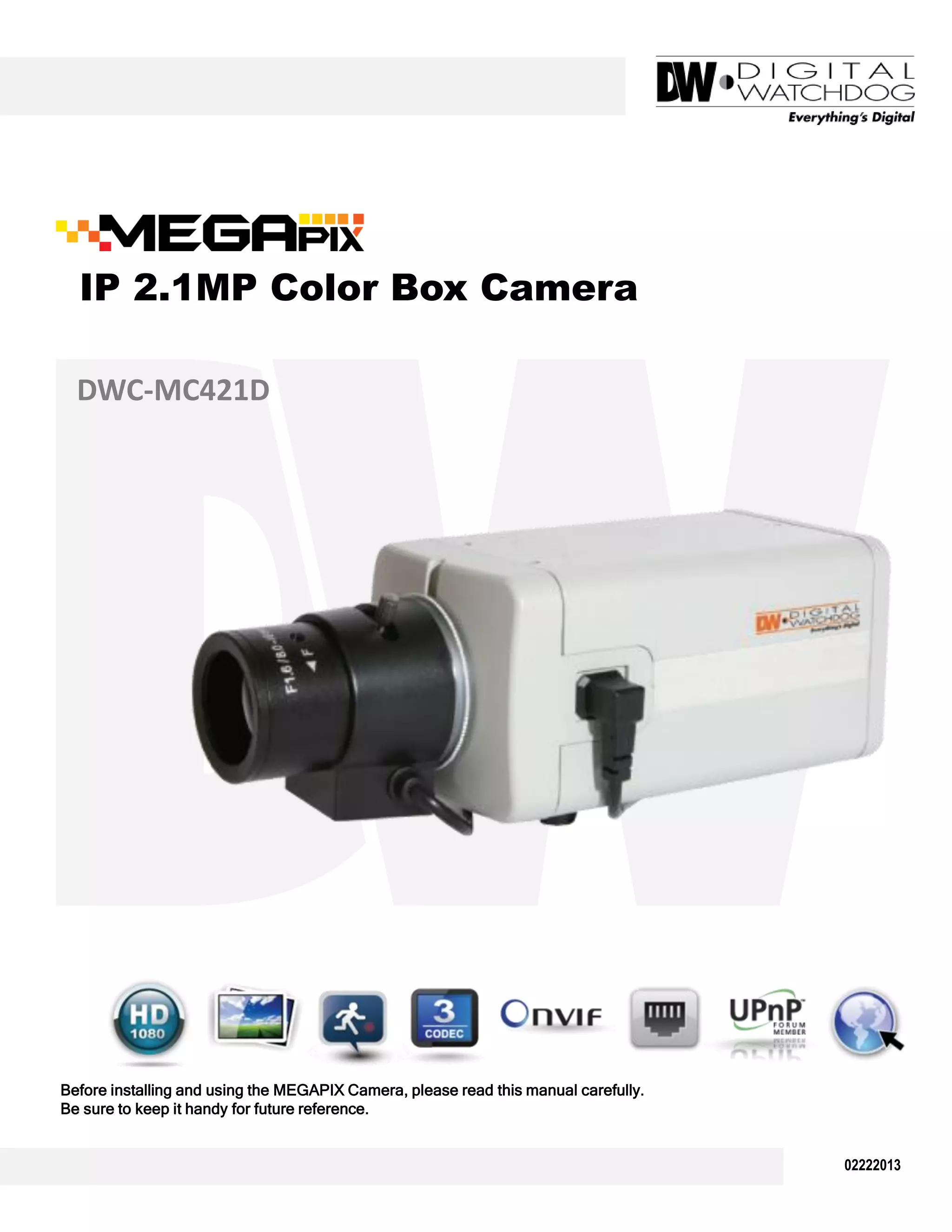 The document is a user manual for the megapix camera, detailing installation, precautions, and features, such as remote video monitoring and data storage options. It emphasizes safe handling, proper installation guidelines, and network connection methods, including PoE compatibility. The manual also covers troubleshooting, camera setup, and maintenance procedures, providing essential information needed for effective usage.
