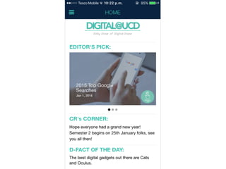 Digital@UCD Mobile App was developed to assist Marketing students of UCD Smurfit stay ahead of the game, with the latest news and developments in the digital industry and also help with their day-to-day activities.
