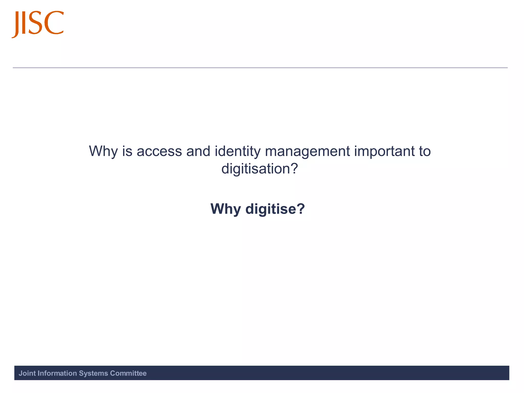 The document discusses the importance of access and identity management for digitization projects. It notes that digitization can democratize access to cultural works, safeguard artifacts from destruction, and nurture cultural identity. Effective access and identity management is needed to safely deliver digitized content to users while respecting copyright and managing metadata and user experience. Trusted systems are also important to provide users access to authentic resources through a transparent process.
