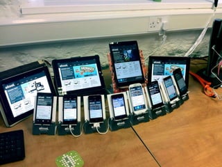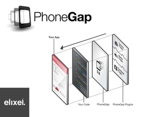 PhoneGap is a framework that allows developers to build mobile apps using standard web technologies like HTML, CSS, and JavaScript. It allows building apps that can be deployed across various mobile platforms like iOS and Android. The document discusses PhoneGap's history, supported platforms, plugins, examples, benefits of using HTML5 over native development, software requirements, deployment methods, app structure considerations, getting started steps, UI libraries, data storage options, and debugging tools.