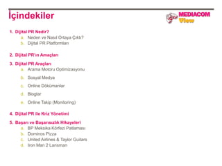 • Dijital PR; bir markayı, bir şirketi, bir projeyi veya bir