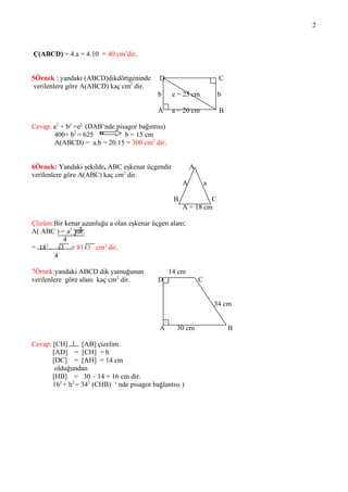 verilenlere göre alanı kaç cm2 dir. D . C