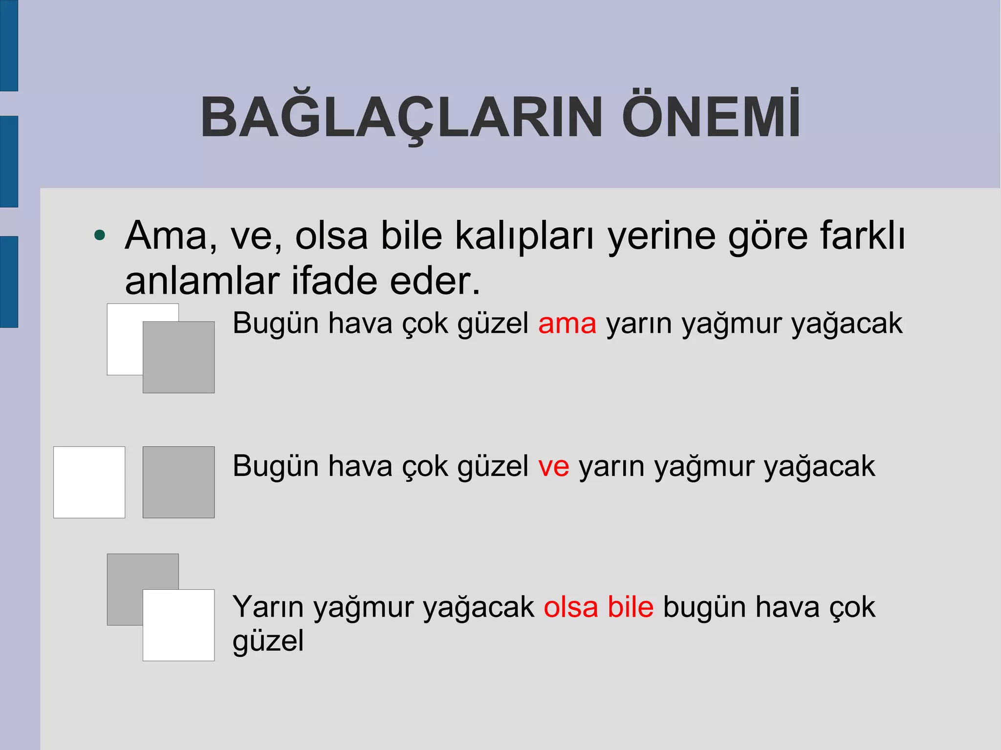 Ama, ve,olsa bile kalıpları yerine göre farklı