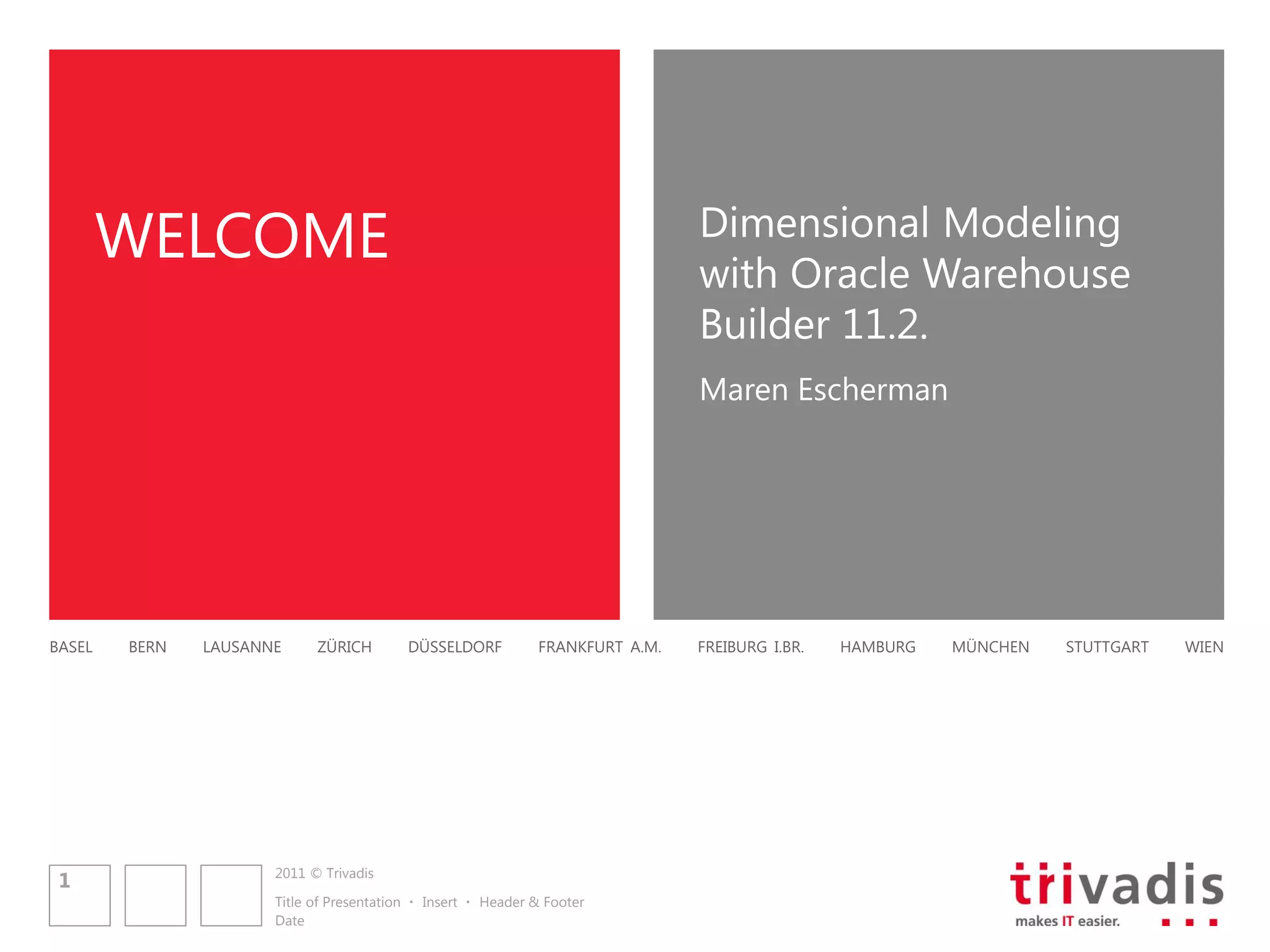 This document provides an overview of dimensional modeling and loading dimensions and cubes using Oracle Warehouse Builder. It discusses key concepts like dimensional modeling, star schemas, slowly changing dimensions, and orphan management. It also describes how to define dimensional objects like dimensions and cubes in OWB and how the dimension and cube operators help to efficiently load data into those objects while handling issues like SCDs and orphans. Overall, it outlines how OWB supports dimensional modeling and ETL to help implement production data warehouse processes.