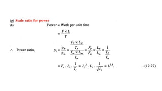 This document discusses dimensional analysis and its applications. It begins with an introduction to dimensions, units, fundamental and derived dimensions. It then discusses dimensional homogeneity, methods of dimensional analysis including Rayleigh's method and Buckingham's π-theorem. The document also covers model analysis, similitude, model laws, model and prototype relations. It provides examples of applying Rayleigh's method and Buckingham's π-theorem to define relationships between variables. Finally, it discusses different types of forces acting on fluids and dimensionless numbers, and provides model laws for Reynolds, Froude, Euler and Weber numbers.