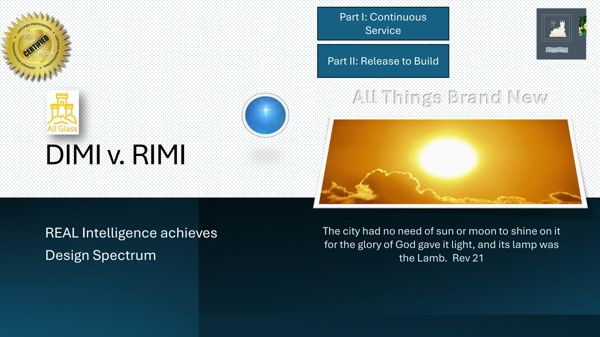 The DIMI v RIMI Part I document provides an extensive overview of advanced concepts in design intelligence, cloud banking, structural design, and photosynthetic assimilation. It is divided into two main parts: