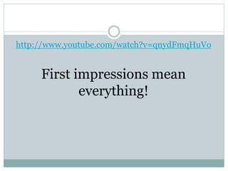 Dining etiquette is important for making a good first impression, especially during job interviews over meals. Some key points of etiquette include: using the correct silverware in the proper order, keeping your napkin on your lap, chewing with your mouth closed, and signaling that you are finished by placing your utensils at 5 and 10 o'clock on your plate. Specific foods have unique etiquette as well, such as eating berries with a spoon or breaking bread into bite-sized pieces. Following dining etiquette helps ensure you conduct yourself properly in social and professional settings.
