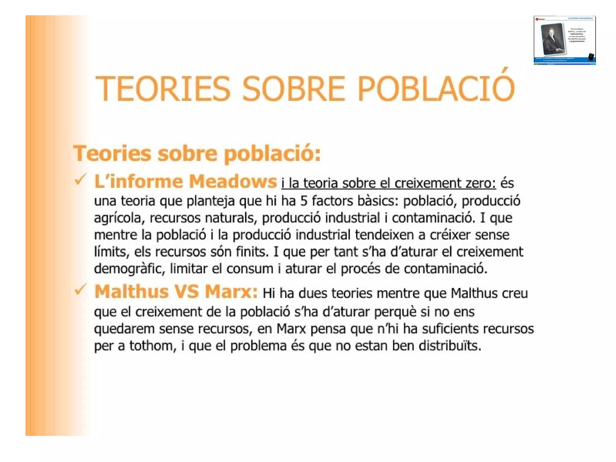 • TEORIES MALTUSIANES O ANTINATALISTES: reducció