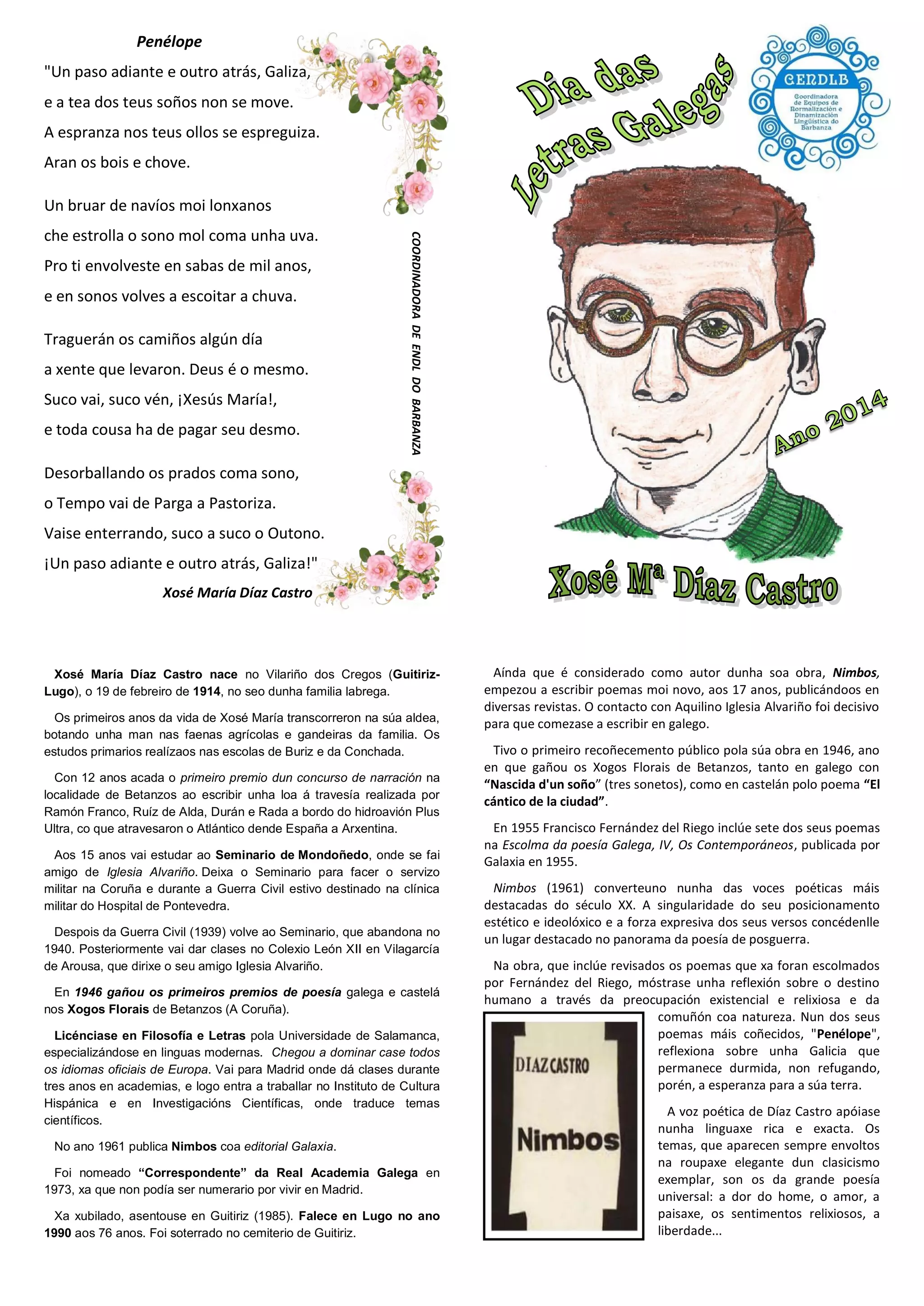 A voz poética de Díaz Castro apóiase