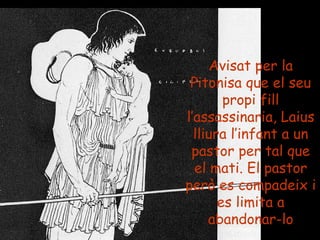 Avisat per laPitonisa que el seu propi fill l’assassinaria, Laius lliura l’infant a un pastor per tal que el mati. El pastor però es compadeix i es limita a abandonar-lo