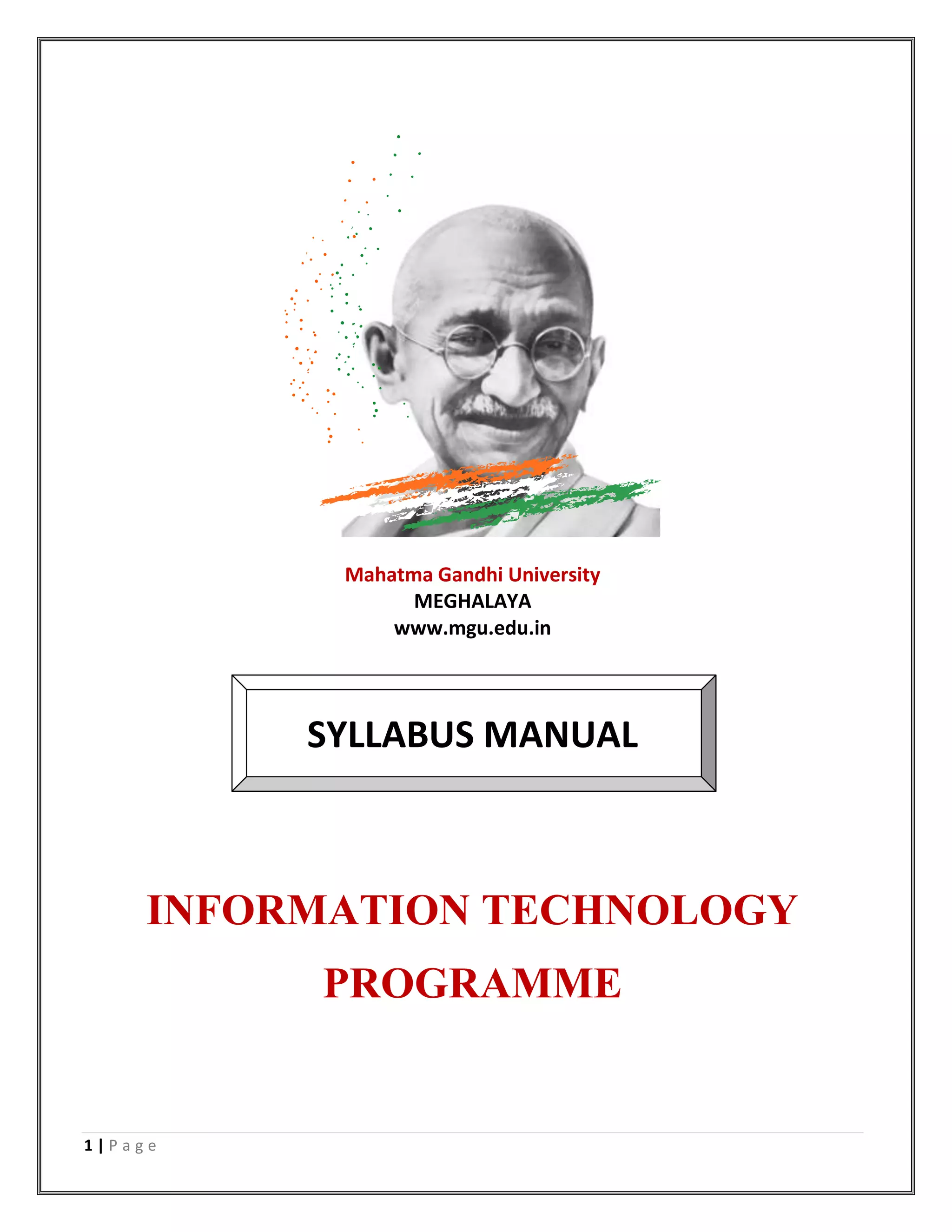 This document outlines the syllabus for the Diploma in Computer Application (DCA) program at Mahatma Gandhi University Meghalaya, detailing courses offered in Information Technology. Key subjects include Introduction to Information Technology, Programming in C, Relational Database Management Systems, and Operating Systems, among others, with specific modules and credits assigned. It also provides a comprehensive breakdown of the curriculum by units and topics covered under each subject.