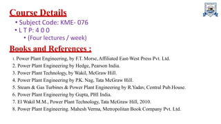 The document provides a comprehensive overview of power plant engineering, detailing various energy sources, their environmental impacts, and the principles of power generation. It covers traditional and alternative power plants, including fossil fuels, nuclear, hydroelectric, solar, wind, and geothermal energy, alongside their operational mechanisms. Additionally, it discusses energy concepts, carbon credits, and regulations aimed at reducing greenhouse gas emissions.