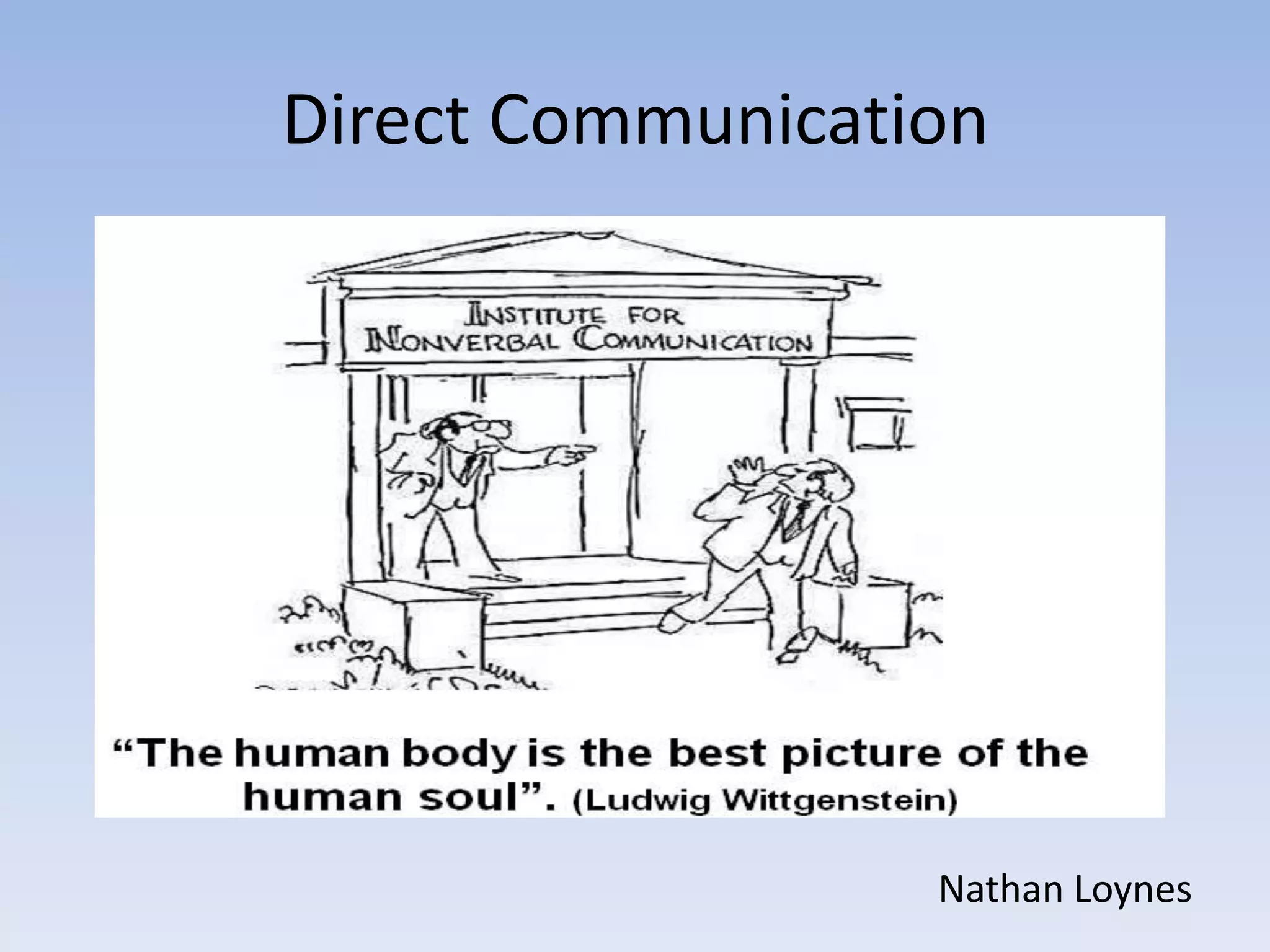 This document discusses the importance of self-awareness in communication. It argues that studying communication, and specifically non-verbal communication and one's own tendencies, leads to increased self-awareness. Being self-aware brings self-confidence and inspires confidence in others. The document provides links to videos and a quiz about body language, and defines self-awareness as getting to know one's feelings, attitudes, and values, as well as one's effects on others.
