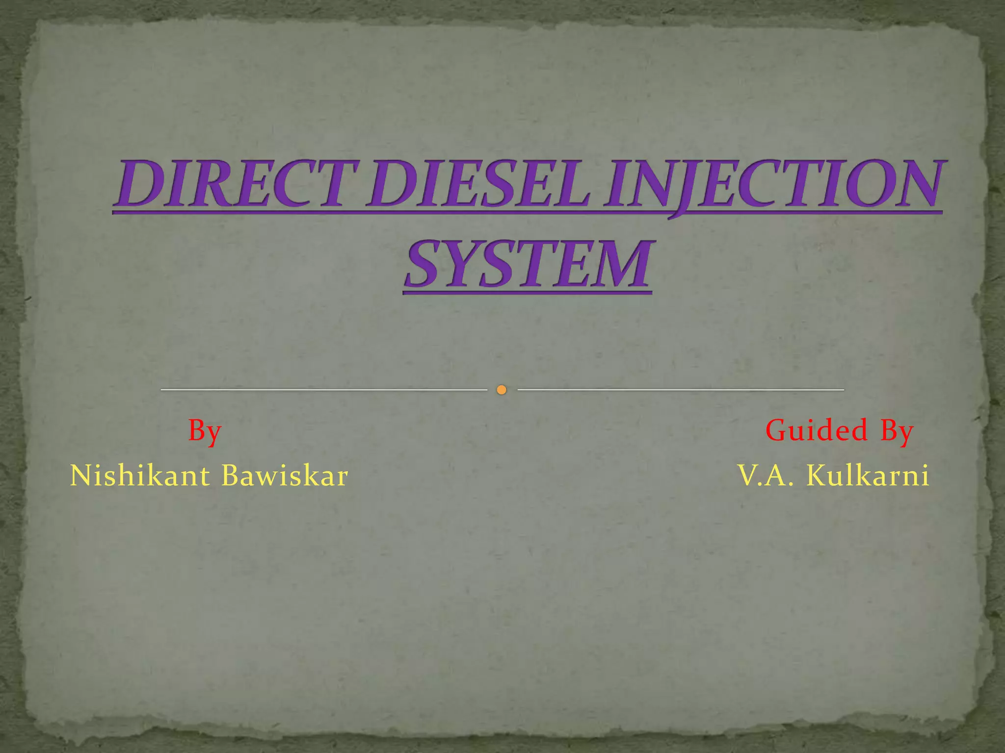 The document discusses direct diesel injection (DDI) and indirect diesel injection systems. It provides details on the operation of direct injection, including injecting fuel directly into the cylinder under pressure. Direct injection allows for better fuel atomization and combustion control compared to indirect injection. Some benefits of direct injection engines include lower emissions, higher efficiency, and reduced fuel consumption.
