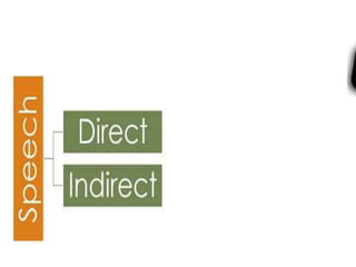 This document discusses direct and indirect speech. Direct speech conveys the exact words of the speaker, while indirect speech conveys the meaning using one's own words. The key rules for changing direct to indirect speech are: changing present tenses to past, changing future tenses to conditional, changing commands to infinitives, and changing "said" to other verbs like "asked" or "ordered" depending on the context. Some examples are provided to illustrate applying these rules. Vocabulary terms "eat like a horse" and "eat like a bird" are defined.