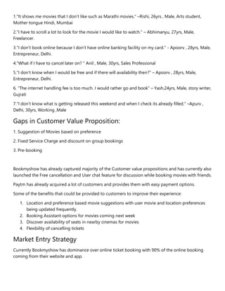 - Existing players BookMyShow and Paytm capture most of the market but have opportunities to improve the customer experience.