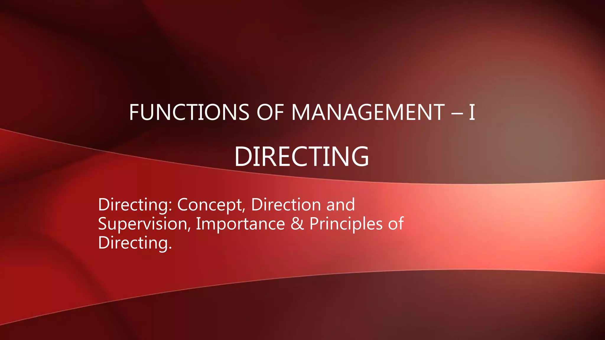 1. Directing is the process by which managers instruct, guide, motivate and lead subordinates to achieve organizational objectives. It includes communication, supervision, motivation and leadership.