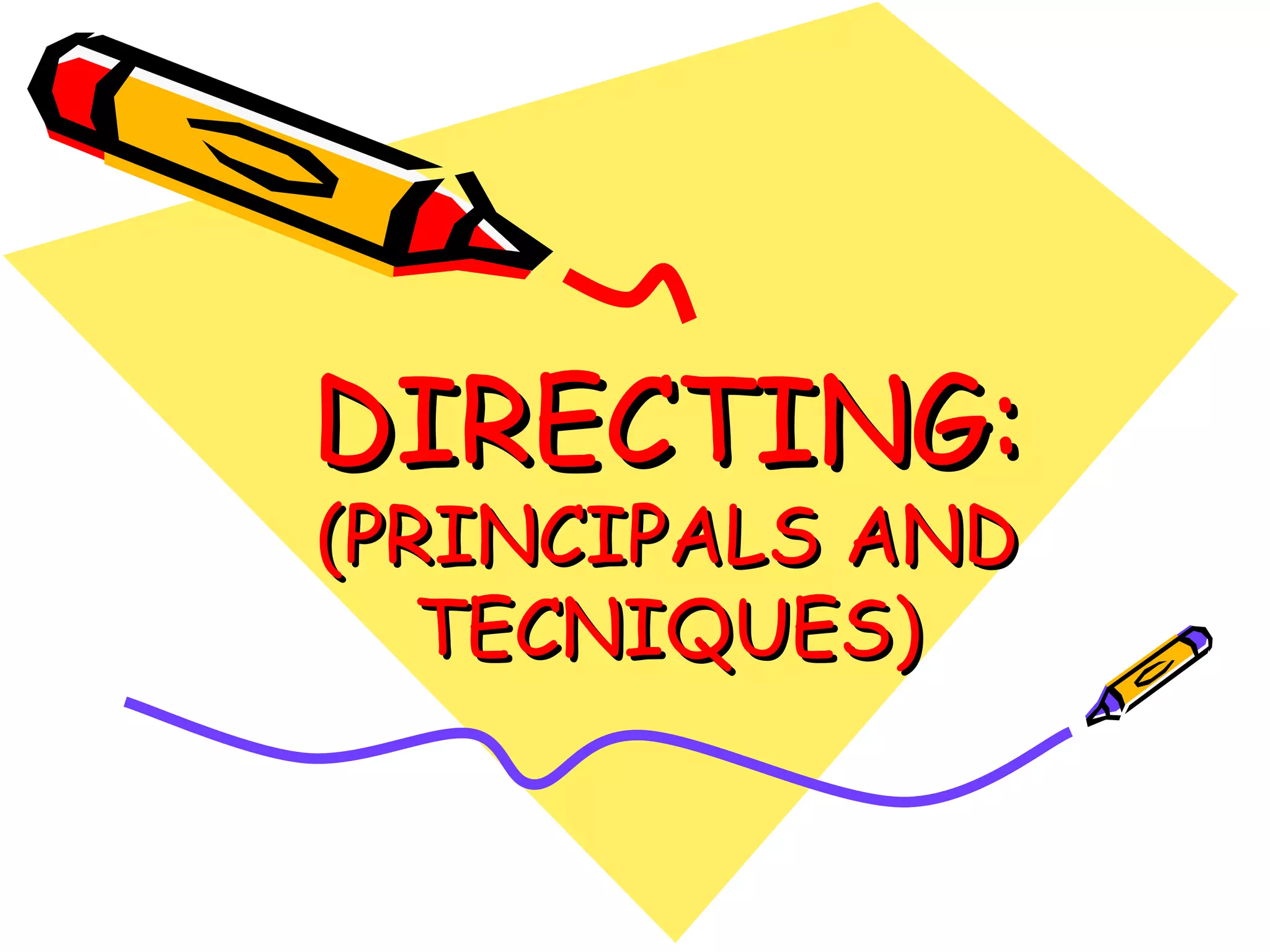 Directing is the process by which managers guide subordinates to effectively achieve organizational objectives. It involves functions like motivation, communication, supervision, and leadership. Directing is important as it initiates action, integrates employee efforts, facilitates implementation of changes, and creates balance in the organization. The principles of directing include maximizing individual contribution, maintaining harmony of objectives, ensuring unity of direction, and employing appropriate direction techniques. Elements of direction are supervision, leadership, motivation, coordination, and communication & understanding. Direction differs from supervision in that direction involves setting policies and occurs at higher levels, while supervision focuses on implementation and occurs at lower levels.