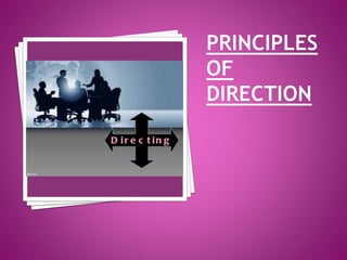 The document outlines the concept of direction in management, describing it as a key function that involves instructing, guiding, counseling, and motivating employees to achieve organizational objectives. It emphasizes the importance of effective direction, which initiates action, flows from top to bottom, and integrates individual efforts towards common goals. It also highlights the role of leadership and communication in the direction process, using Apple Inc. as a corporate example to illustrate these principles in practice.