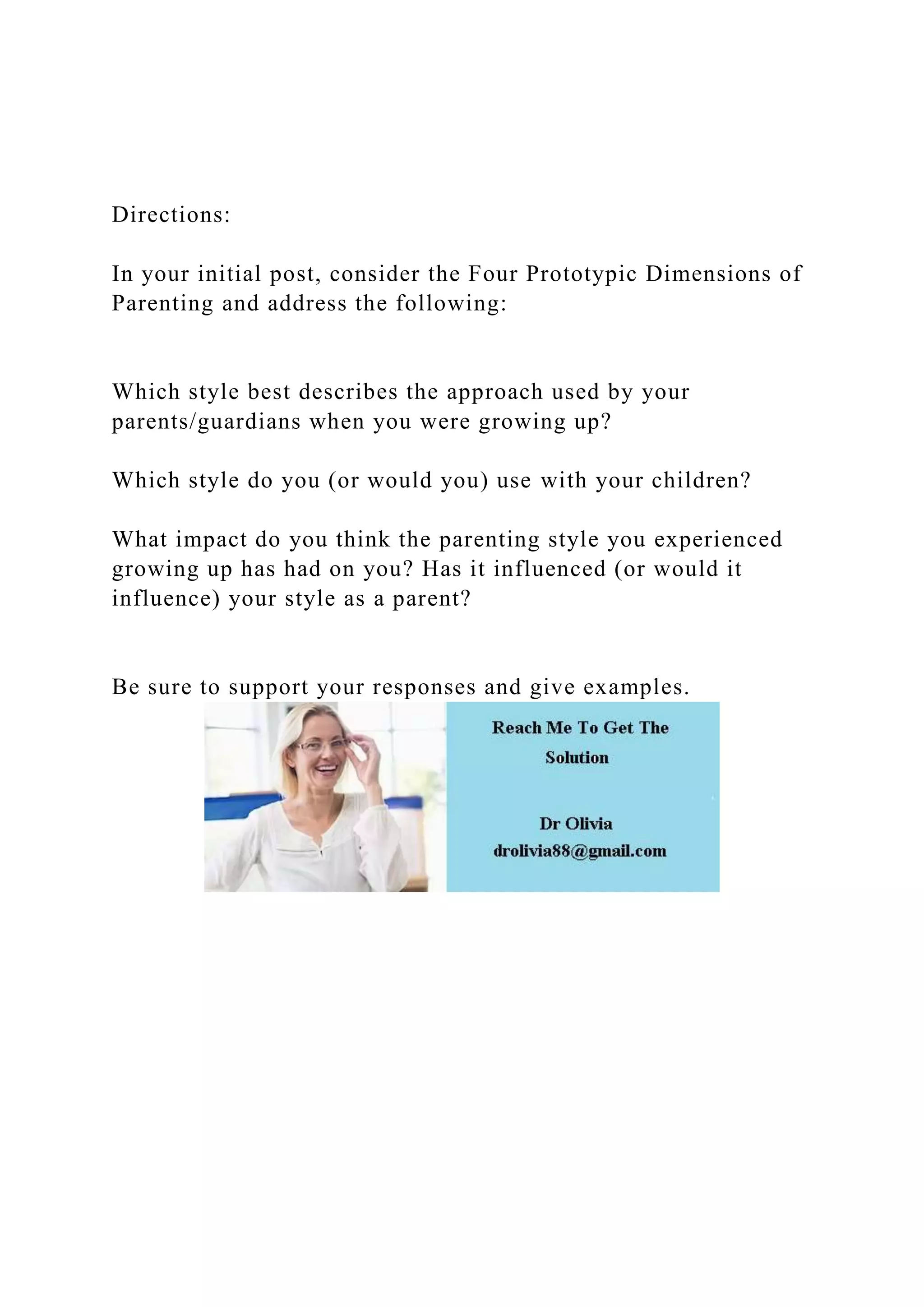 The document prompts reflection on parenting styles by asking individuals to evaluate their own upbringing and compare it to their intended parenting approach. It encourages sharing personal experiences and the impact of these styles on one's development and future parenting decisions. Participants should provide examples to support their insights.