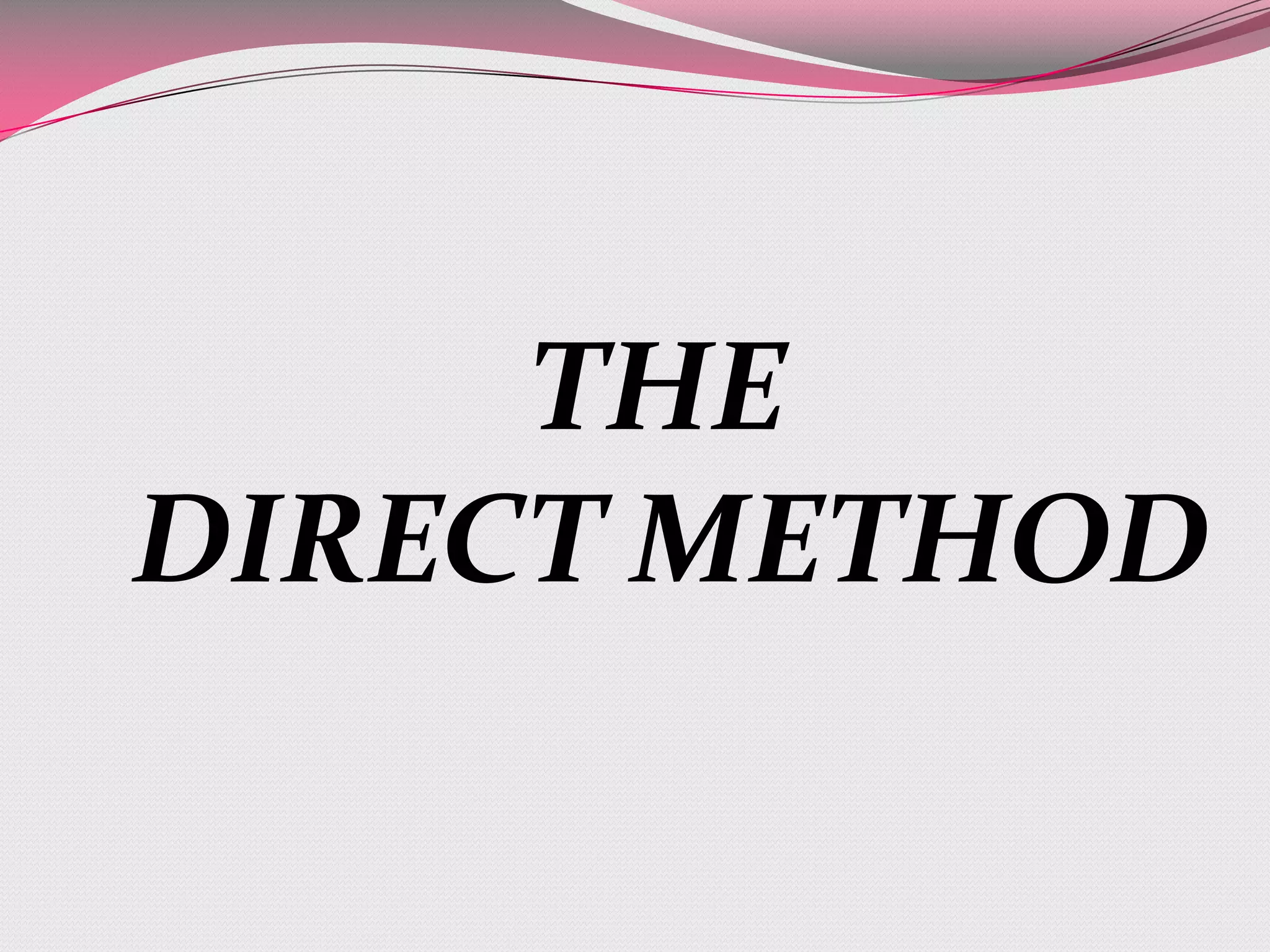 The document discusses the Direct Method, a language teaching method developed in the late 19th century as a reaction against traditional grammar-translation methods. It aimed to teach foreign languages in a similar way that children acquire their first language, through immersion in the target language without translation or explicit grammar instruction. Key features included using the target language exclusively, teaching vocabulary through examples rather than word lists, emphasizing pronunciation, and focusing first on oral skills. The document outlines the principles and strategies of the Direct Method and compares it to the Grammar Translation Method. It notes both its advantages in promoting communicative skills but also limitations that prevented widespread adoption.