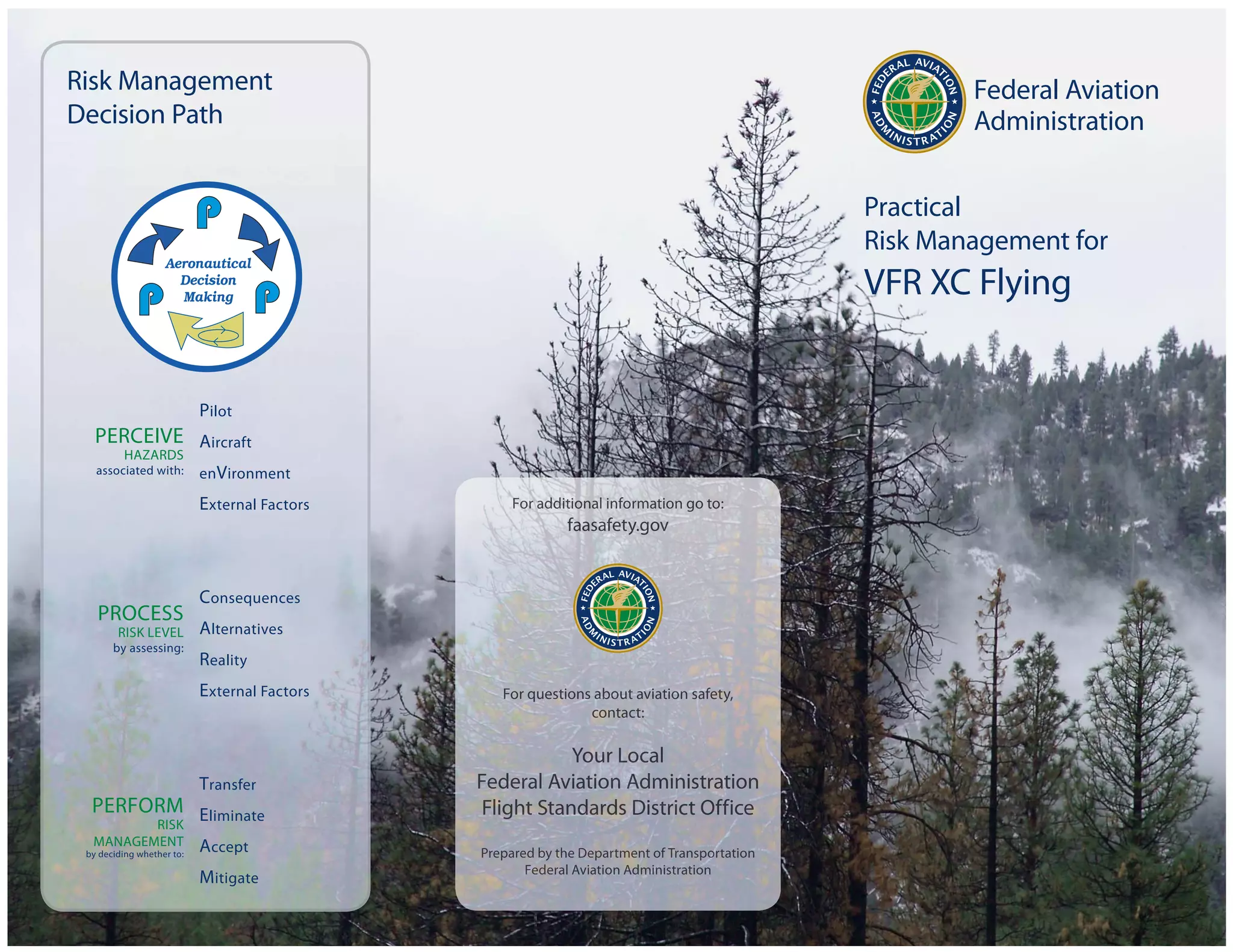 This document provides guidance for teaching pilots risk management during cross-country flights. It recommends structuring a flight review or transition training as a cross-country trip to an unfamiliar airport. During the flight, scenarios can be used to simulate risks like engine failures or GPS/VOR malfunctions. Upon returning, maneuvers from a flight review like stalls or steep turns can be performed. The document suggests using "teachable moments" during the flight to identify hazards and risks regarding the pilot, aircraft, environment, and external factors. After landing, the pilot should reflect on what went well, what could be improved, and the most important lessons learned from the flight.