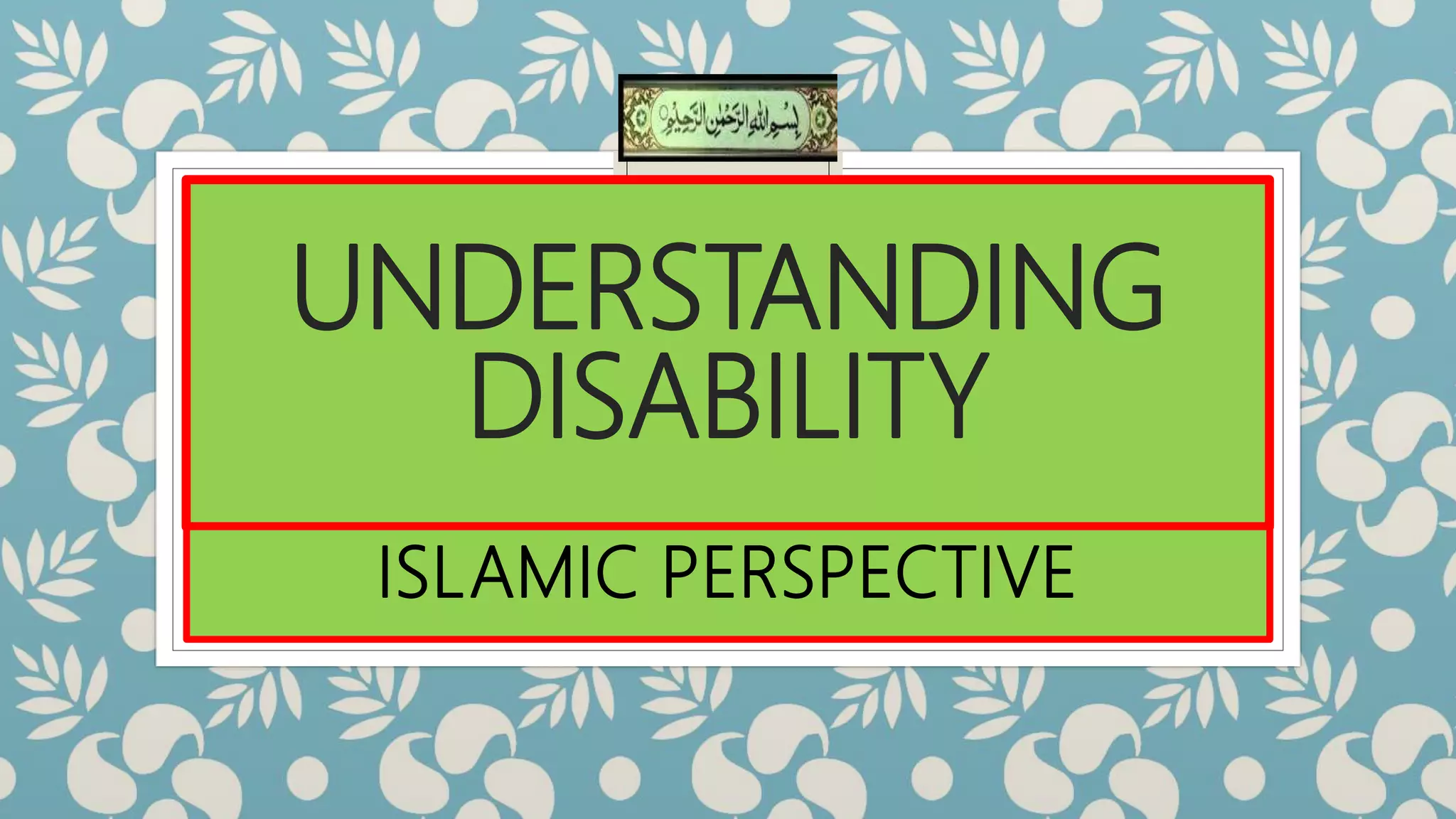 The document explores the Islamic perspective on disability, highlighting the importance of inclusion and support for individuals with disabilities within society. It emphasizes that faith plays a significant role in the lives of disabled individuals, and outlines the responsibilities of the community to facilitate their inclusion and well-being. Additionally, the document provides statistics on disability globally, discusses misconceptions about disability, and suggests actionable steps for improving awareness and support for people with disabilities.