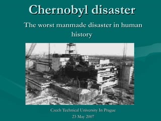 On April 26, 1986, a reactor explosion at the Chernobyl nuclear power plant in Ukraine released radioactive material into the atmosphere. Due to operator errors, explosions destroyed the reactor and started fires that lasted 10 days. Over 7 million people in nearby areas were exposed to radiation, with thousands dying or suffering long-term health effects. It was the worst nuclear disaster in history.