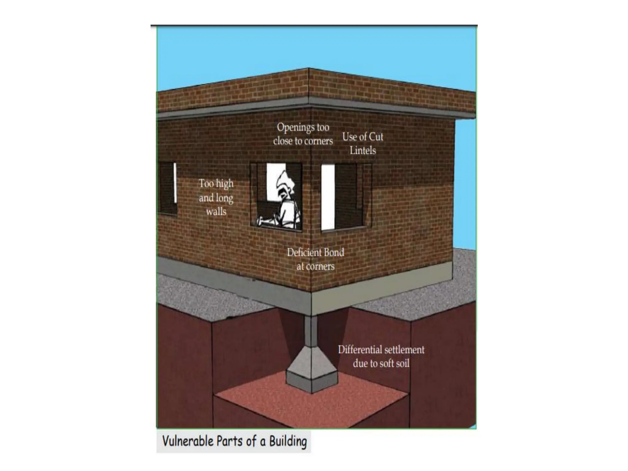 The document outlines essential principles for constructing disaster-resistant buildings, including guidelines on foundation types, structural components, and design considerations specific to various hazards like earthquakes and floods. Key aspects such as foundation depth, wall height, and reinforcement techniques are emphasized to ensure safety and durability. It also discusses the importance of construction quality and methodologies to enhance the resilience of structures in hazard-prone areas.