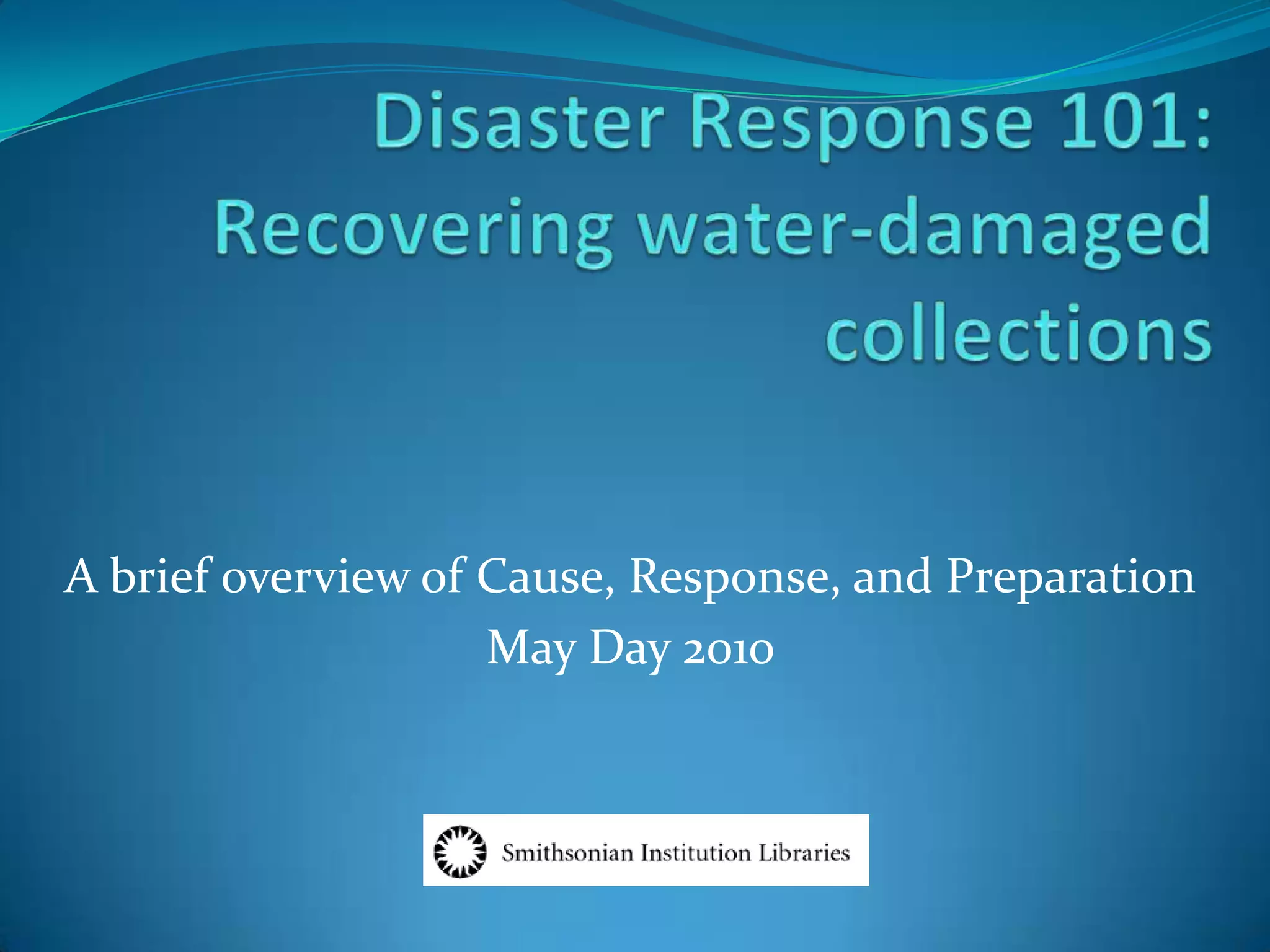 Water is the most common cause of damage to library materials. When water damage occurs, rapid response is essential to effectively recover collections. Wet materials begin distorting immediately and are at risk of mold growth. The first steps are to remove standing water, assess damage, and freeze or air dry wet items. Very wet materials should be frozen within 6-8 hours to prevent mold. Partially wet items can be air dried or interleaved with blotting materials. Proper preparation includes assigning responders, prioritizing collections, and having disaster response kits prepared.