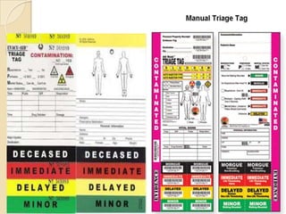 The document defines disasters and outlines the roles of nurses in disaster management. It discusses: