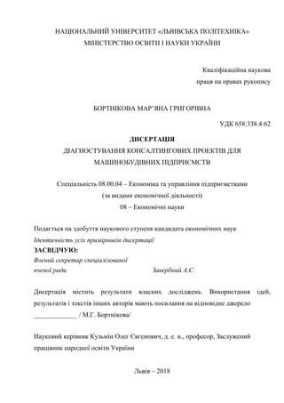 Бортнікова М.Г. Діагностуванняконсалтингових проектів для