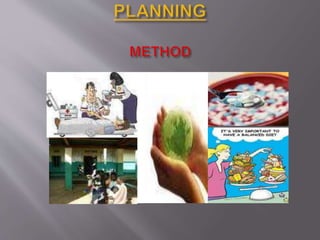 The document discusses discharge planning from a hospital. Discharge planning involves coordinating activities to provide harmonious services for the patient's departure from the hospital. It ensures patients have information on their condition and follow up care, safe return of belongings, and assistance adjusting from hospital to home. Effective discharge planning requires assessing patient needs, developing a nursing care plan, implementing and evaluating the plan, and coordinating with family members and community resources.