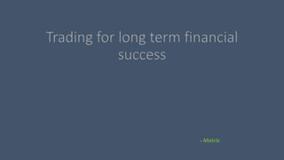 This seminar covers how to approach trading as a skill, common mistakes made by new traders and how to avoid them, the skills needed to be profitable like risk management and technical analysis, how to achieve these skills through practice and learning, how to trade small accounts through options with rules like position sizing, and that the ultimate goal is consistency while protecting capital. The presenter has 5 years experience as a profitable swing trader and will take live questions at the end.