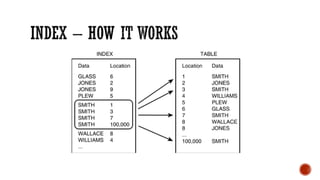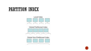 3) Performance topics including tablespaces, fragmentation, partitioning, indexing, and tuning.