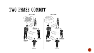 2) Transaction management concepts such as ACID properties, transactions, distributed transactions, and two phase commit.
