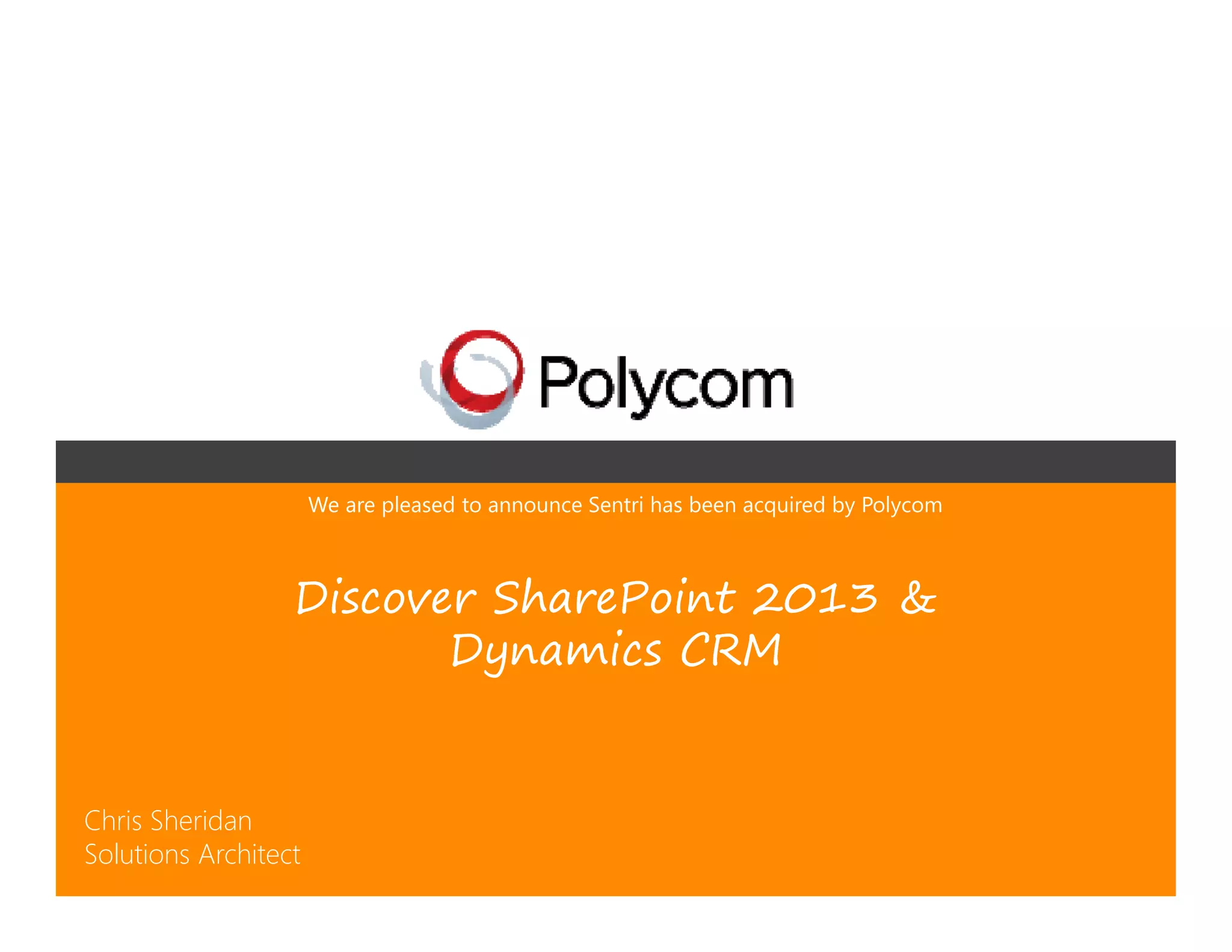 The document announces that Sentri has been acquired by Polycom. It discusses Polycom's financial strength, strategic partnerships, customer momentum, and industry leadership in video conferencing. The acquisition of Sentri will help Polycom expand its offerings from equipment to solution capabilities.