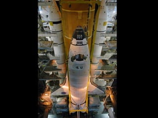 準備將掛好引擎的太空梭立起