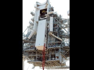 文档描述了太空梭发射前的运送过程,包括载送器的使用、设备的组装以及包裹的准备。提到的关键环节包括将太空梭与火箭引擎组装并运送至发射台。总体过程需要6至8小时,距离3.5英里。
