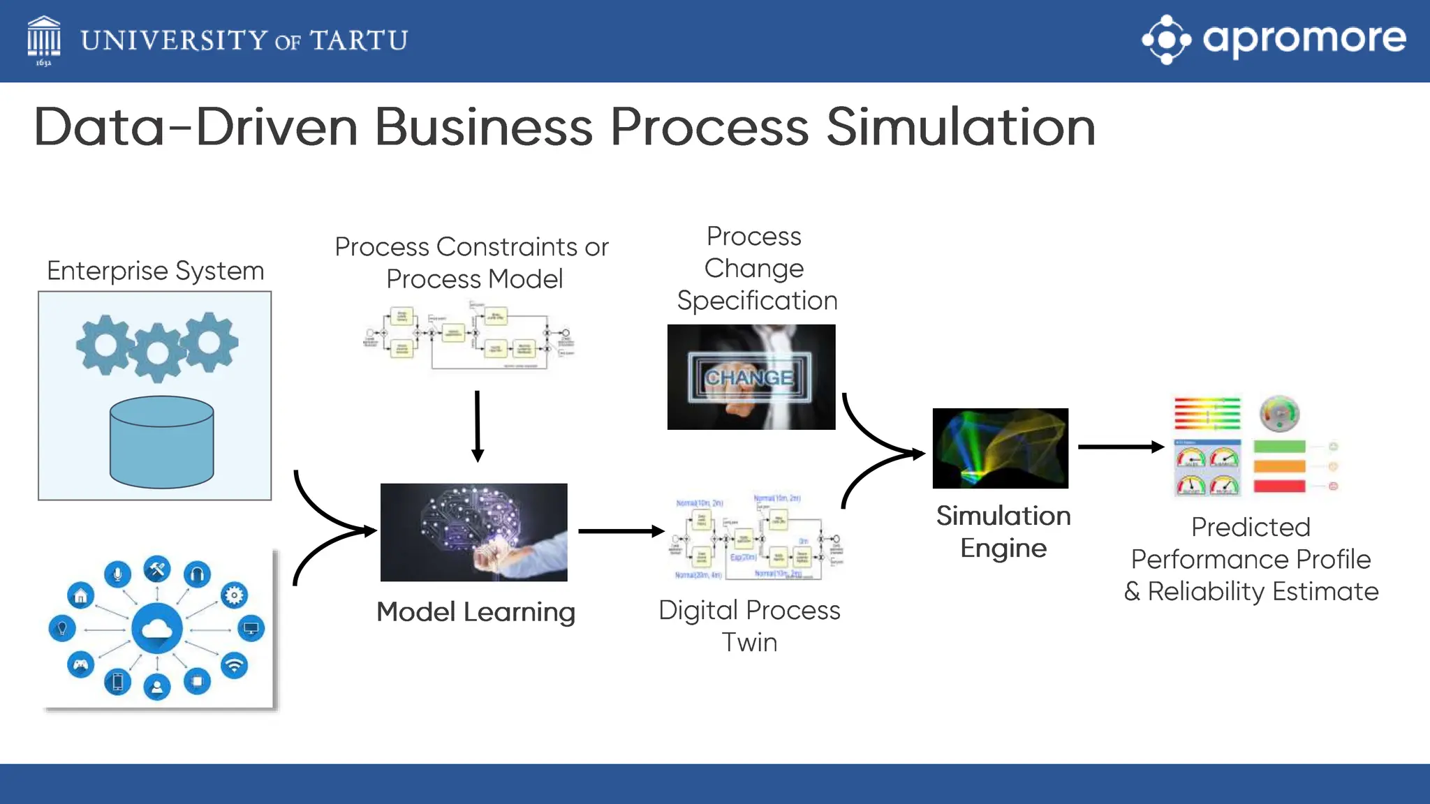The document outlines the process for conducting business process simulations using a defined scenario and analysis techniques to assess performance measures. It discusses the limitations of traditional simulations and the need for improvements, such as incorporating differentiated resources and better handling of waiting times. Additionally, it highlights methodologies for enhancing prediction accuracy and reliability in simulation outcomes.