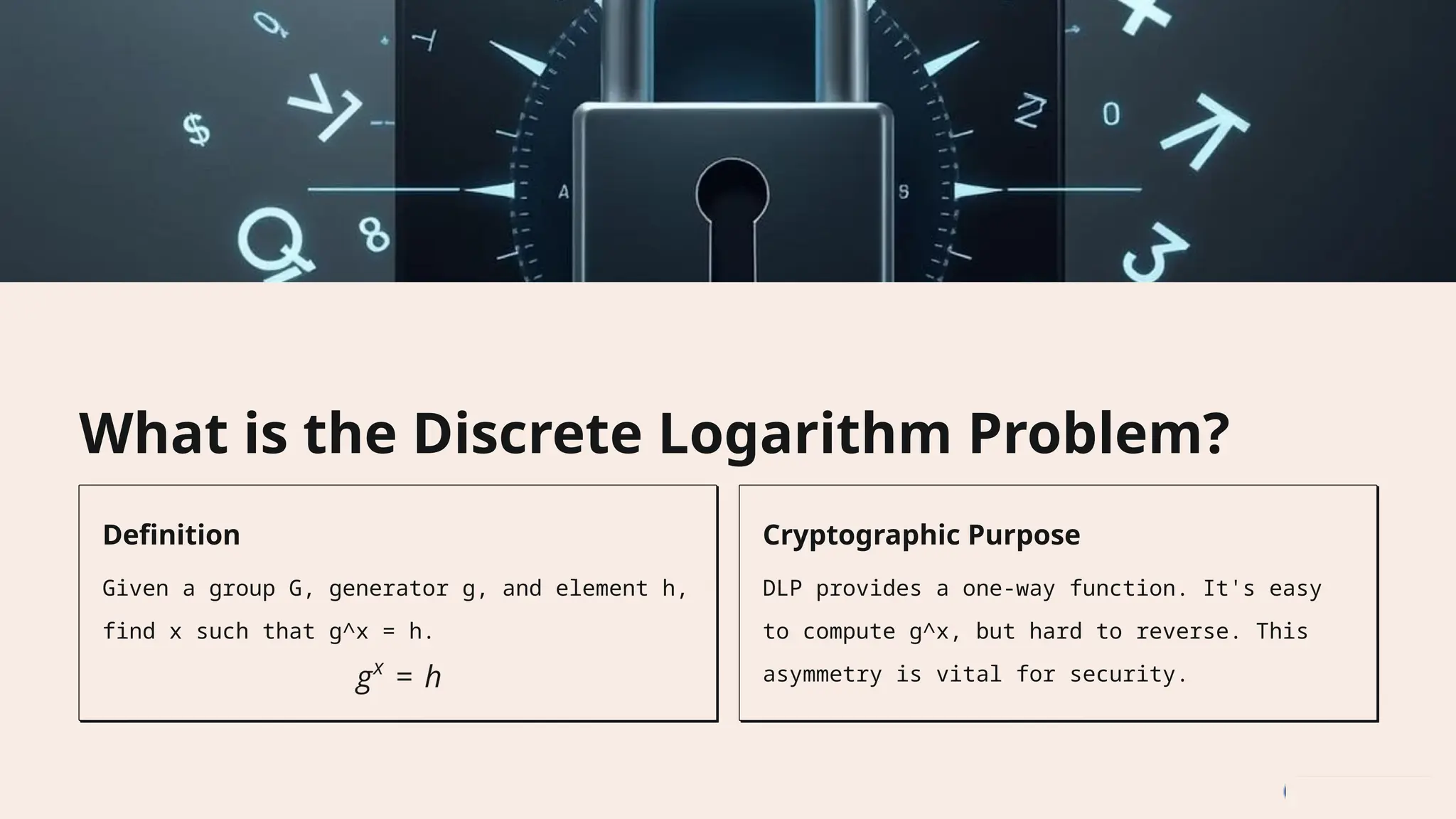 Explore the Discrete Logarithm Problem (DLP). Understand