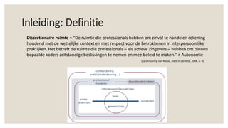 Discretionaire ruimte= “De ruimte die professionals hebben om zinvol te handelen rekening